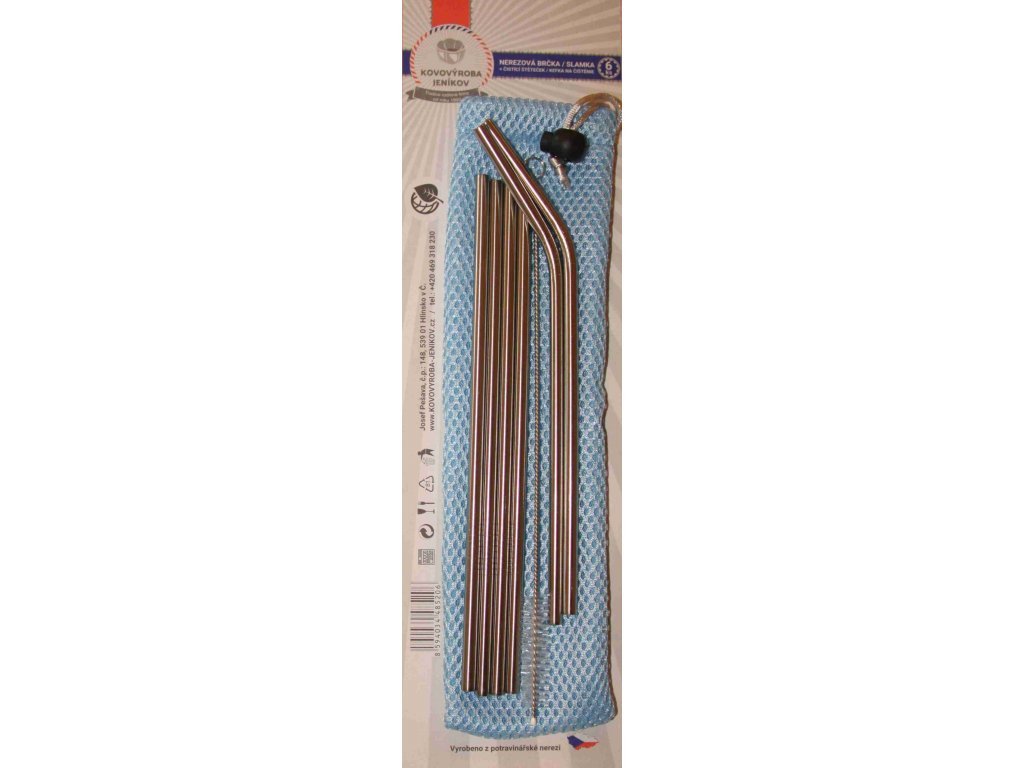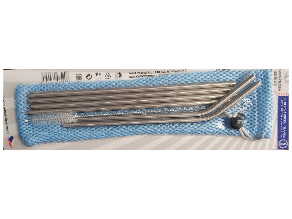 Sada nerezových brček 6 ks + čistítko+ sáček MODRÝ 1ks
