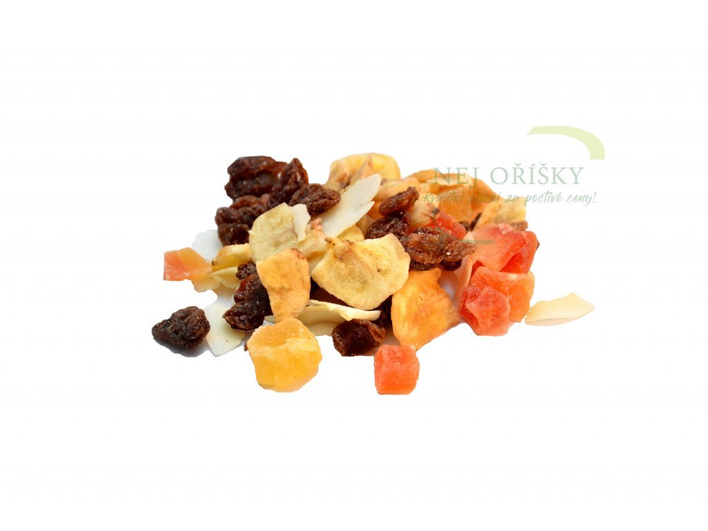 Složení: Rozinky, papaya, banán chips medový, ananas, kokos chips, cukr, slunečnicový olej, kokosový olej, bezinkový koncentrát, med, konzervant : SO2,